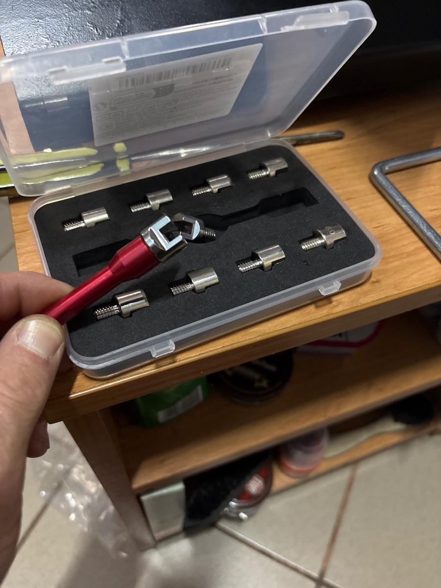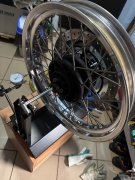 Când credeam că am terminat cu toate upgrade-urile și dotările necesare,a mai aparut ceva…. Povestea incepe asa…. am vrut să centrez în regie proprie,roata pe față care avea o mică oscilatie laterala si genera un voblaj foarte usor intre 50 -60 km/h. Prețul unui centrări este de minim 500 Lei, cu condiția să te duci cu roata în mănă fără cauciuc și demontată de pe motocicletă. Adica inca minim 100 Lei. După ce am răsfoit pe domnul Google, am comandat sculele necesare care m-au costat cat as fi dat pe o centrare(trusă chei de spițe,stand centrare-echilibrare,ceas comparator cu suport magnetic,plumbi,protectii plastic pt jante), am mers pe premiza de a încerca,dacă o stric mai rău asta e….măcar am încercat,ma duc la meseriașu’ centrator și plătesc centrarea. Cu ocazia asta hai să fac și o simulare,cu sculele pe care le car cu mine pe moto, să văd dacă pot face o demontare si montare a rotii in cazul unei eventuale pene de cauciuc… Aici incepe show-ul…..: Demontez roata de pe moto fără probleme,o dezumflu,si prin metoda clasică de urcat cu picioarele pe cauciuc încerc să dejantez cauciucul ..nimic..dau cu degripant pe talonul cauciucului…nici o sansa, dacă eram pe Transfăgărășan mă mânca ursu’, până venea vreo platformă să mă ia de acolo adică ceva bani cheltuiti si nu putini stricarea excursiei…. Mai exista varianta să încerc cu altă motocicletă si apasare cu cricul lateral sau cu un cric de masina bagat sub o mașină,dar pe un eventual drum pustiu nu te poti baza pe ajutorul altcuiva. Într-un final ,cu mari eforturi ,am reușit dejantarea facand parghie cu un lemn lung,un cub si o balustrada metalica de acasa. Deci în concluzie pe drum nu aș fi reușit singur să fac o eventuală pană de cauciuc. Iau din nou pe Google la cercetat știind că există Kit-uri cu care să transformi janta cu spițe în janta tubeless, destul de scumpe și rezultatul nu este garantat sau ține pe moment și te lasă când ți-e lumea mai dragă. Văd că există și o variantă cu silicon special, prin crearea unui cordon ermetic deasupra spițelor… mă duc la Leroy iau ce trebuie, vin acasă mă apuc de treabă,dar siliconul ingreunează foarte mult janta, greutatea nu e distribuită chiar uniform,ia și din spațiul în care trebuie să intre cauciucul(centrul jentii) în momentul în care vrei să-l scoți…am zis…pass.. Curat janta atunci cat era inca moale si ma impac cu ideea ca am incercat. Traiasca Youtube..Pun roata pe stand,reușesc să o centrez,montez cauciucul cu camera inapoi,pudra de talc intre camera su cauciuc,cateva umflari si dezumflari pana a sarit talonul pe janta ,reusesc sa o si echilibrez static,ii dau si un polish si o ceara si inapoi pe moto. Ies in probe…alta viata,totul ok,zero voblaj..hai ca nu am muncit si investit degeaba…dar “pasarica”cu eventala pana se cuibarise pe creierul meu si ma tot ciocanea… Roata spate la fel să-i scoate foarte greu trebuie ridicată motocicleta pe cricul central,plus niște lemne pentru că nu iese roata din cauza aripii spate sau înclinată motocicleta în lateral pe cricul central, lucru pe care nu îl poți face singur pe drum. Stiiam ca exista Moto Guzzi V7 Stone cu jenti de aliaj,este identica la furca si bascula cu a mea, practic este aceeași motocicletă diferă doar niște culori,farul si bordul. Așa că am cumpărat de pe eBay din Italia un set de genți de V 7 Stone, au venit cu cauciucuri,dar mai tocite si discurile mai uzate ca ale mele, nici io problemă,oricum nu mă interesau,așa că le-am pus pe ale mele de pe jențile cu spițe, altă demontare și dejantare de cauciucuri,acum 4 in total, tot în regie proprie că era Duminica si vulcanizarile inchise.. Jențile sunt negre, l-am pus pe fiul meu,să-mi vopsească si sa le monteze pe moto jențiIle în alb,argintiu sau negru ,bineinteles cu AI-ul,eu sunt paralel la deastea, si am decis ca deocamdată să le las în culoarea originală neagră, păstrează linia neagră a motocicletei începând cu furca,motorul,cadrul și bascula pe spate. Am montat cauciucurile pe jentile negre le-am etansat cu apă și săpun,echilibrat static, verificat profesional etanșarea într-o cadă cu apă. În weekend fac primul test cu ele Am schimbat levierele, Prenandez -ul și peticele din trusa de scule cu un kit de pană cu șnur și spray etanșare roți, compresorul il aveam deja ! Accept criticile cu fruntea sus,recunosc fapta,dar nu o regret,lucrarea este făcută, nu voi vinde jentile originale,decât odată cu motocicleta cand va veni timpul. Pozele fac cat 1000 de cuvinte IMG_1925.mov IMG_1900.mov Norocul meu a fost ca anvelopele Michelin sunt tubeless,altfel …alti bani,alta distractie. -