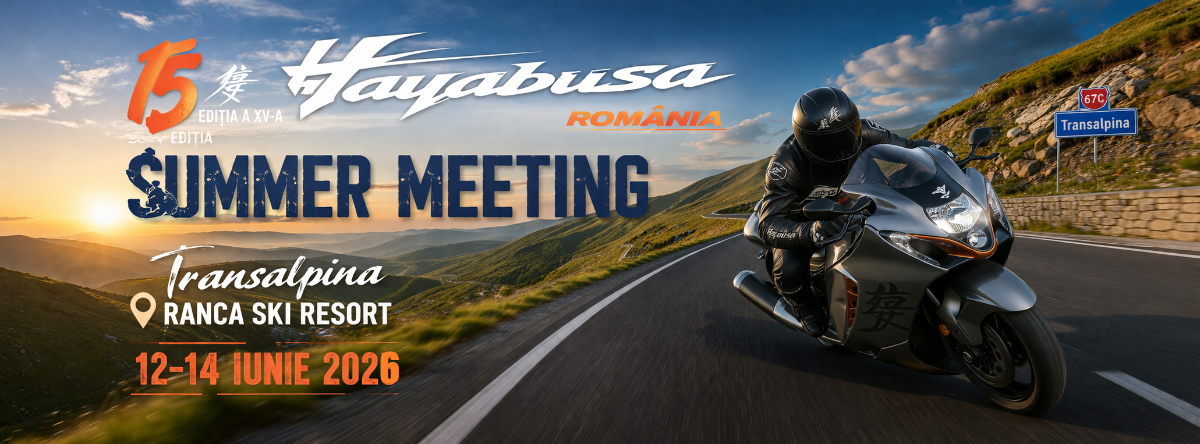 Hayabusa Romania Summer Meeting 2026 Ești posesor sau pasionat de legendă? Te invităm să te alături celui mai mare eveniment Hayabusa din acest an! Indiferent de generația motocicletei tale, te așteptăm să scriem împreună istoria comunității Suzuki Hayabusa în România. UNDE: Transalpina, Rânca RâncaSki Resort CÂND: 12-14 iunie 2026 Vino să simți puterea comunității și să împărtășești pasiunea pentru 1300+ cc. Pregătește-ți motorul. Ne vedem pe Transalpina ! Pentru mai multe detalii pune o intrabare aici: 1. https://www.facebook.com/Hayabusa.Romania sau 2. https://www.facebook.com/marius.cojocaru.758/