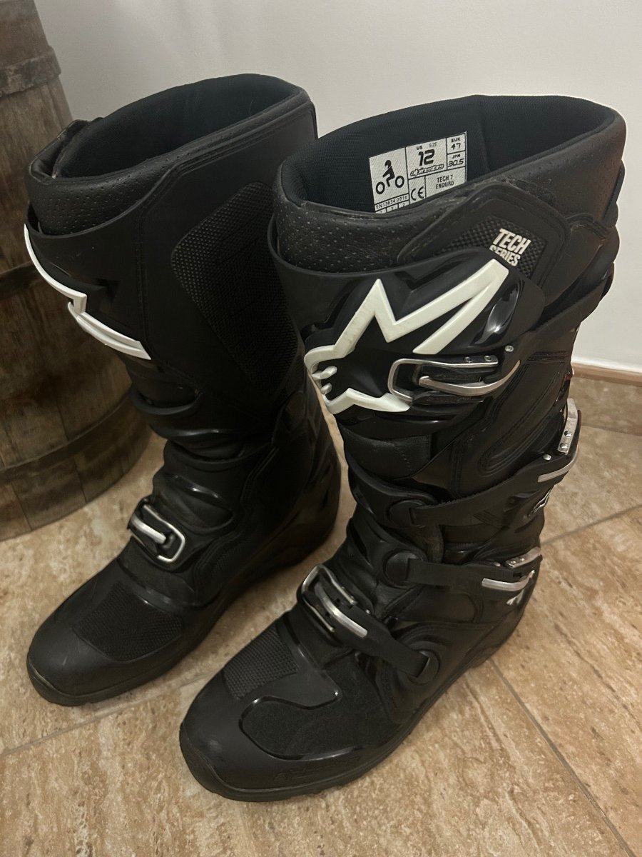 Fac curatenie in echipamentele moto, vand urmatoarele cizme: 1. Cizme Alpinestars Tech 7, marimea 47 dar se potrivesc la fix pentru marimea 46. Stare foarte buna (9/10 - unde 10 sunt noi din magazin) , purtate la cateva iesiri. 2. Cizme Gaerne G-Dakar Aquatech marimea 46, luate anul trecut de la BB Moto si cu 2-3 ture la activ, insumand aproximativ 3000 km, pret 1200 lei, stare impecabila. Preturile sunt negociabile in limita bunului simt. Contact aici pe topic sau mesaj privat.