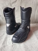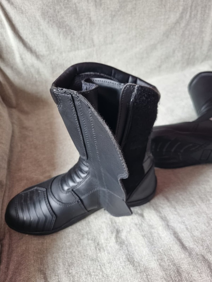 Se scot la vanzare urmatoarele produse, doamna nu prea mai merge cu motorul, din pacate. Toate cu predare/probare in Bucuresti. Contact: PM 1. 300 RON: Cizme moto Bogotto, marimea 40, purtate o data, protectii Cat 2 degete, calcai, glezna si schimbator, Water Resistant, elemente reflectorizante. Features: waterproof upper material (polyurethane) Comfortable polyester liner with foam padding. Waterproof and breathable Hipora® membrane. High grade Rubber sole, anti-shock and anti-skid with strong grip. YKK zippers. Velcro closure to adjust the calf size. TPU Gearshift reinforcement pad.. Plastic shinbone protection. Plastic ankle protection on both sides heel reinforcement reflective inserts protective footwear for motorcycle riders (EN 13634:2015) 2. 280 RON: Manusi noi piele motocicleta, Marca Alphahead, Marimea S, Nepurtate. Protectii degete, knuckle si palm sliders 3. 350 RON: Pantaloni Touring Alphahead, mărime declarată XL, talie reala 40-45cm, layer waterproof interior, layer gros pentru toamna/iarna, protectii genunchi si solduri Level 2, buzunare ventilatie fata/spate. Ajustabili in talie și la glezna. Purtati de 2 ori. -