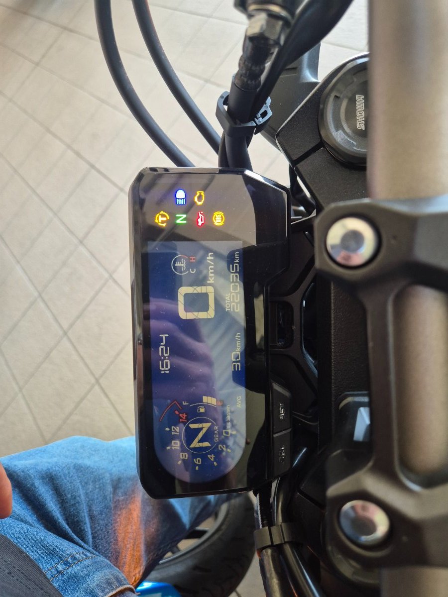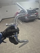 S-ar putea la una dintre manete sa fie reglajul avansului iar la cealalta maneta acceleratia Ambreiajul este cel clasic pe partea stanga Oricum motocicleta e tare Ceva mai detaliat aici