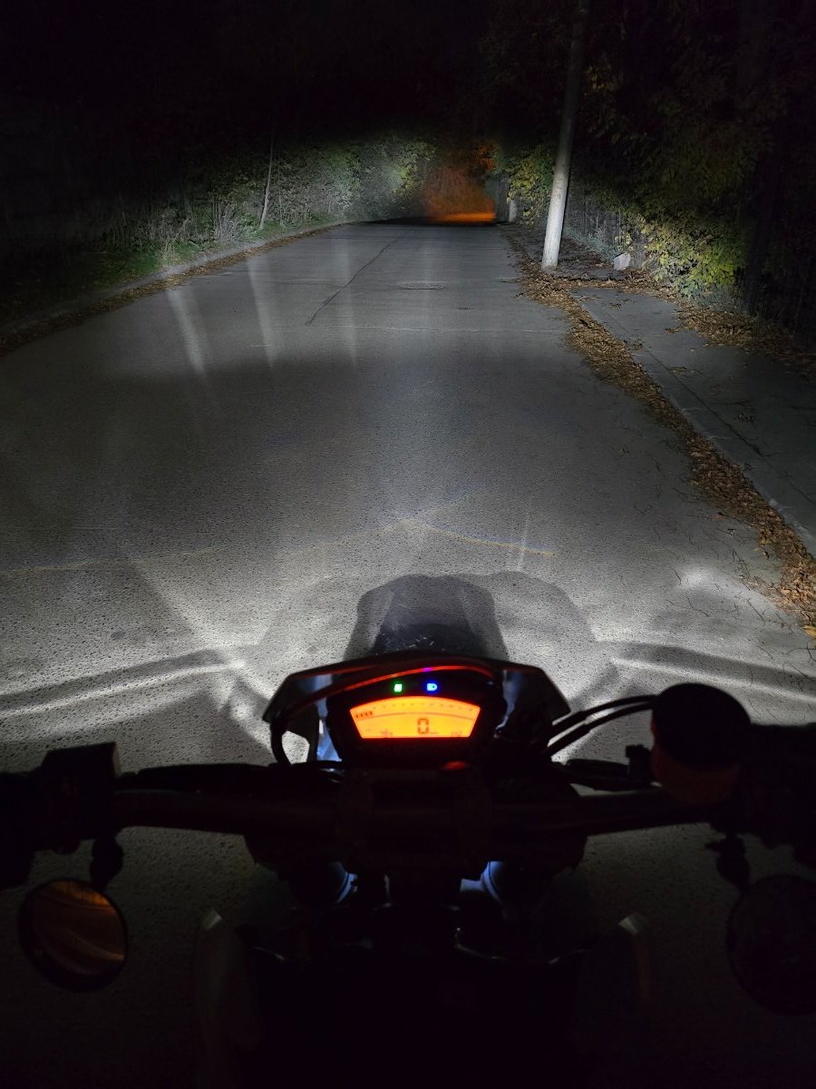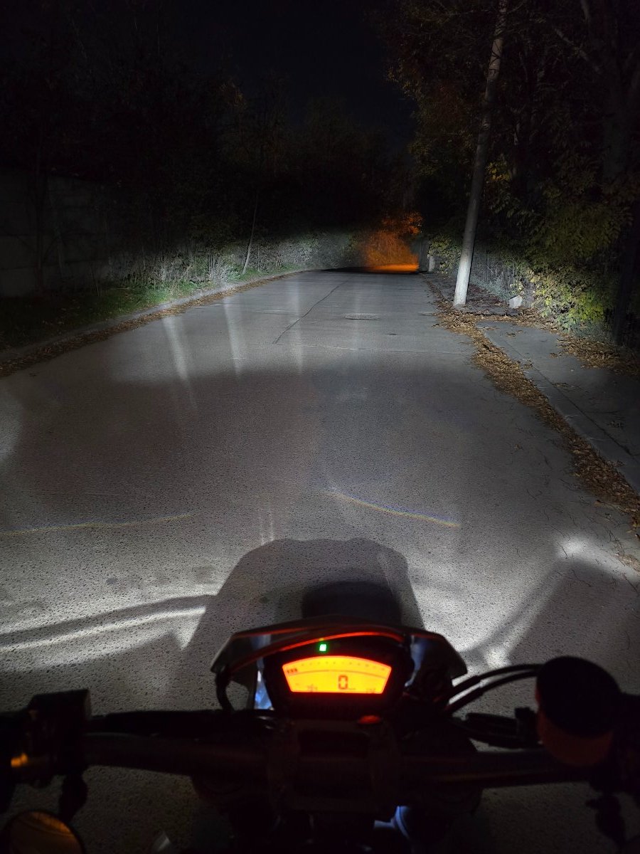 Salut. Oooooo bun. Deci indirect probabil ca ne-am cunoscut la AMCKart. Uite aici la etapa din 2011, la antrenamente. La cursa am iesit 12 sau 13 din 24, ma duelam cu unul zis Sasha, cred ca acum Sasha are un service moto. Pana acum am 100km cu SWM-ul, asa am aflat si ca are un consum de 5% ceea ce e normal, mai ales ca acum este limitata. Rezervorul are 7litri. De mers in oras, este ca un MTB. Te mai intreaba lumea la stop ce motor are, cand aud 501cmc majoritatea sunt uimiti. Bine la noi lumea nu prea stie ce este SM, este de inteles. Oricum este o motocicleta care atrage zambete, indiferent de varsta, oana si politistii zambeau astazi cand eram primul la stop. Majoritatea crede ca este de 125cc tinand cont de silueta ei. Azi cand am plecat de acasa am ciupit-o asa putin (timid) pe o roata. Am ajuns acum putin timp acasa si am reusit sa tetsez si calitatea farului. Dupa cum se poate vedea pe faza scurta, cu setarea cea mai joasa a farului LED-ul bate semnificativ mai puternic in aceeasi forma clasica de far de Enduro/SM decat versiunile vechi pe halogen, alea zici ca erau pe "candela". Pe faza lunga bate in stele (setat la maxim in jos). Totusi se vede slabut, comparativ cu al meu CF Moto 450 MT, ala lumineaza bine de tot, ca un automobil. O sa ii montez saptamana viitoare oglinzile normale pt ca cele in stil MTB sunt niste porcarii pericolase, pierzi 1 sec sa iti cauti imaginea in genunchi practic pt ca sunt sub ghidon oglinzile de acum. De asemenea vreau sa ii pun inaltatoare de ghidon macar 4cm.