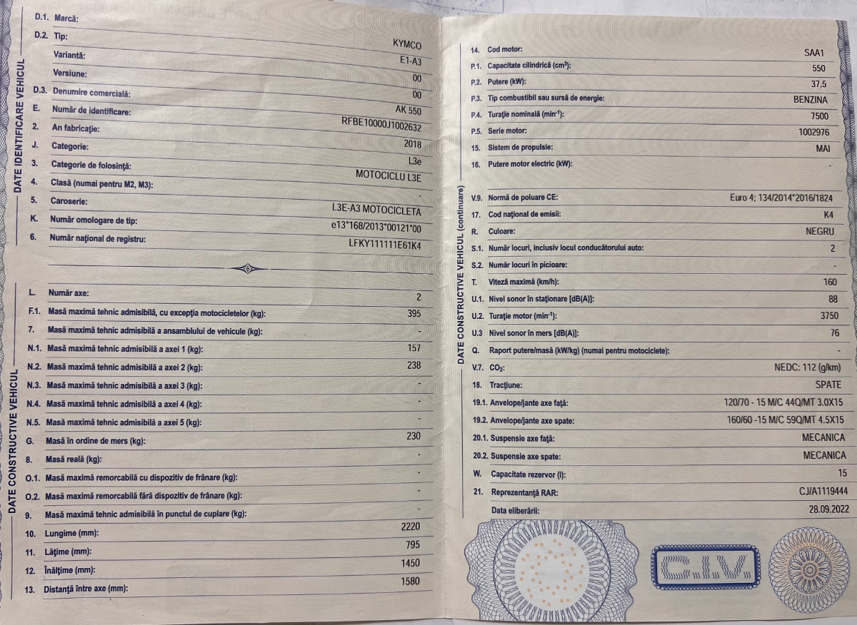 Salutare, as avea si eu o intrebare legata de acest topic.Am un Kymco AK550 din 2018, pe placuta de pe cadru are trecut L3-A2 34.2kw, dar si L3-A3, iar in carte are trecuti 37.5kw.Oare pot sa merg la RAR sa imi modifice puterea in carte?Nu inteleg de ce au trecut asa si nu cat scrie pe placuta lui? Multumesc. - Ieri