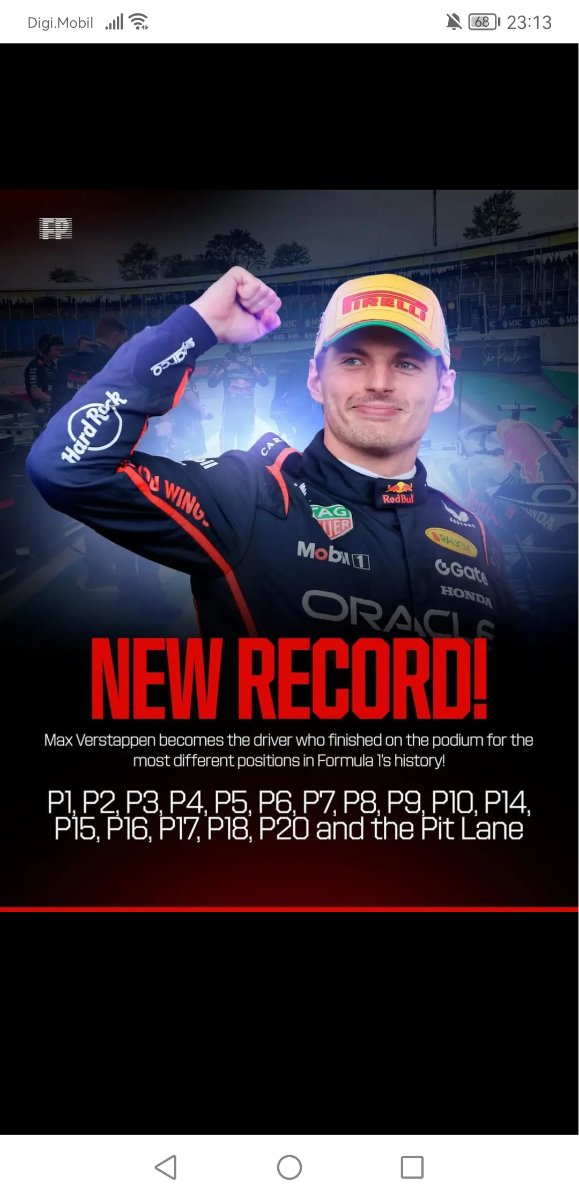 Pai a fost misto cursa lui Max...ca in rest s-au cam aliniat in funcție de valoarea ferului. Bine, a fost un oarecare spectacol cu tot felul de acroșaje, abandonul echipei Ferrari, penalizarea lui Oscar, etc. Per total o cursa ok față de ce vedem in general