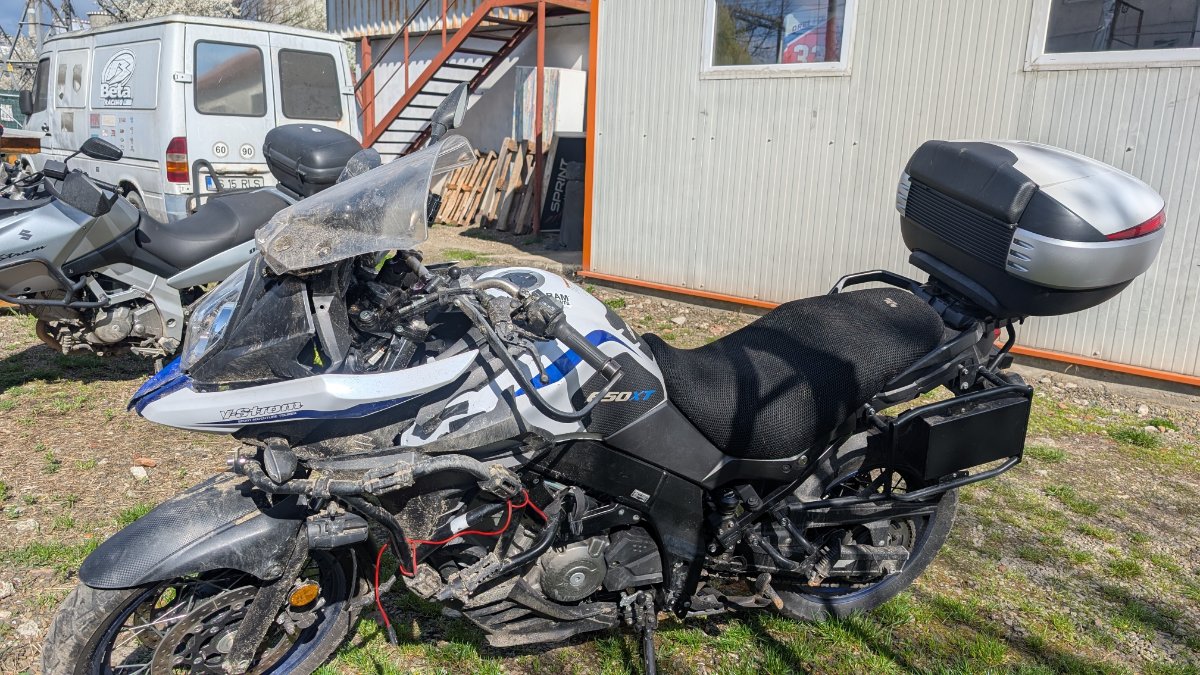 Suzuki V-Strom DL650XT 2019 accidentat Singur proprietar, 36500 km la momentul accidentului. Am intretinut-o cat m-am priceput de bine si am folosit-o preponderent in calatorii mai lungi. Pot pune la dispozitie lista de operatii de service, ultimul schimb de ulei fiind la final de Martie anul acesta. Am ratat o curba si am intrat in decor undeva pe langa Nasebar, Bulgaria. Roti, sasiu si motor ne-afectate. Far, bord si plasticele din fata sparte, rezervorul e usor indoit dar nu spart, ghidon indoit, un suport de scarita si schimbatorul rupte. Poate fi reparata relativ usor de cineva care are timp si determinare, sau poate fi un proiect pentru altceva. Se vinde asa cum se vede in poza. Am dat jos toate plasticere sparte pentru ca daunele reale sa fie vizibile. Toate plasticele sparte, conectori si suruburi exista. Are instalate urmatoarele accesorii: - protectii de ghidon SW-Motech BBstrom - au nevoie de plastice noi; - inaltator de ghidon SW-Motech - manere incalzite Koso - manete mai scurte pliabile. Am si manetele originale; - oglinzi de aprilia tuono - au supravietuit accidentului; am si oglinzile originale noi; - fork brace si protectie de radiator Cosmo - scarite reglabile EVO SW-Motech - scaritele sunt intregi, s-a rupt doar suportul - inaltator de ghidon LSL - topscase Shad 50 cu lampa de frana si capac alb - ceva bare care preiau greutatea de pe codita de la Kappa - SR3112/KR3112 - scut metalic mic Raventech - crash bar Heed - era montat in accedent, l-am desfacut din suruburi si nu a dat semne ca ar fi tensionat dupa acciedent; - proiectoare china cu cutie de sigurante EasternBeaver montat pe un releu; - suport de genti laterale cu cutie pentru trusa de scule si genti de aluminiu Boumont Evo 45. (cost de acizitie 996 euro in 2019). - o gramada de suruburi, saibe si alte prostii pe care le-am strans - ce se vede in poze. Inmatriculata, ITP-ul era valabil la momentul accidentului, asigurarea expira pe 22.04.26. Pret: 4500 euro negociabil -