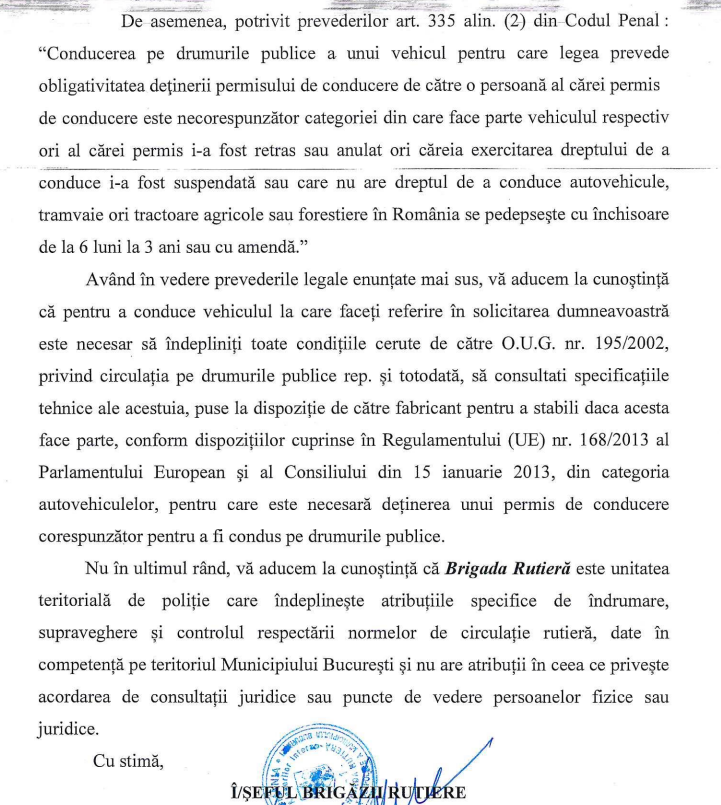 4. In codul rutier pare ca nu se incadreaza in nici o categorie de permis, dar as vrea sa fiu sigur, nu risc asa ceva. Ma intreb cum se sanctioneaza anumite abateri rutiere daca nu ai permis. Categoriile de vehicule pentru care se eliberează permisul de conducere, prevăzute la art. 20 alin. (2), se definesc astfel: a) categoria AM: mopede a căror viteză maximă prin construcţie este mai mare de 25 km/h, dar nu depăşeşte 45 km/h; ...