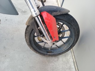 Pana la anvelope trebuie sa rezolv partea cu protectia impotriva jegului aruncat de roti, dar mai ales de roata fata. Practic, mizeria din orice balta prin care trec se regaseste inclusiv pe far, in masca de la far, pe geaca si pe casca. Din cauza ploilor am ajuns sa-l spal zilnic.